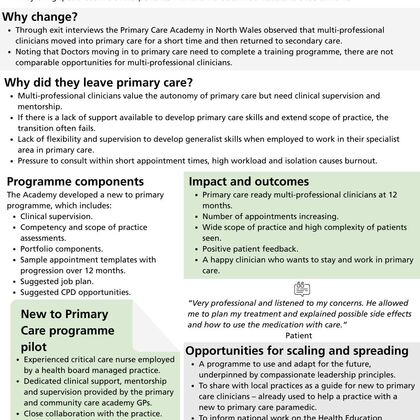 - Supporting retention and sustainability - developing a New to Primary Care Programme for Multi-professional clinicians moving from Secondary to Primary Care